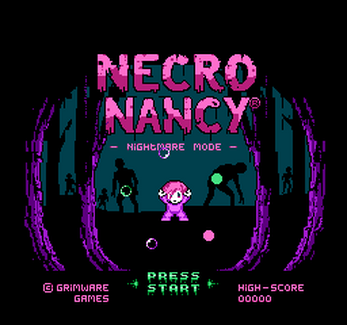 Necro Nancy – Nightmare Mode Demo is a fast-paced 8-bit vertical shooter for the NES. Play as Nancy, a witch who fights against waves of monsters from cursed portals. Blast through hordes of ghosts, skulls, pumpkins, and eyes as you fight to claim the highest score!